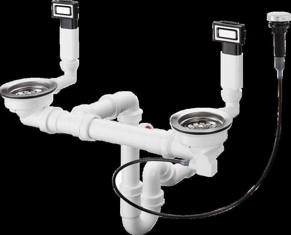 SIFON SI VENTIL AUTOMAT D15-11 PENTRU CHIUVETA BUCATARIE 2 CUVE, INOX