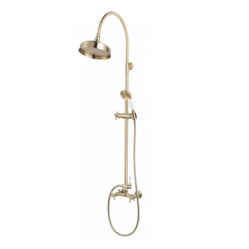 COLOANA DUS ANIMA, CU BATERIE TERMOSTATATA, BARA DUS REGLABILA, CAP DE DUS FIX ROTUND, PARA SI FURTUN DE DUS, AURIU LUCIOS