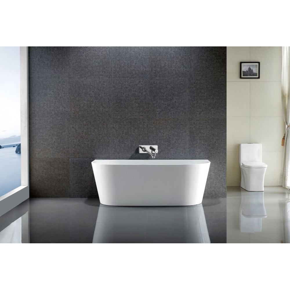 Cada freestanding la perete, model Linea Combine 140×70 cm, realizata din acril premium, dintr-o singura bucata. Aceasta cada, nu contine plastic ABS, ceea ce ii confera o durabilitate mult mai mare in timp si o pastrare impecabila a culorii. Pretabila pentru montare la perete, datorita spatelui drept. Include sifon cu racord flexibil, ventil click clack si cadru metalic din inox, cu picioare reglabile.