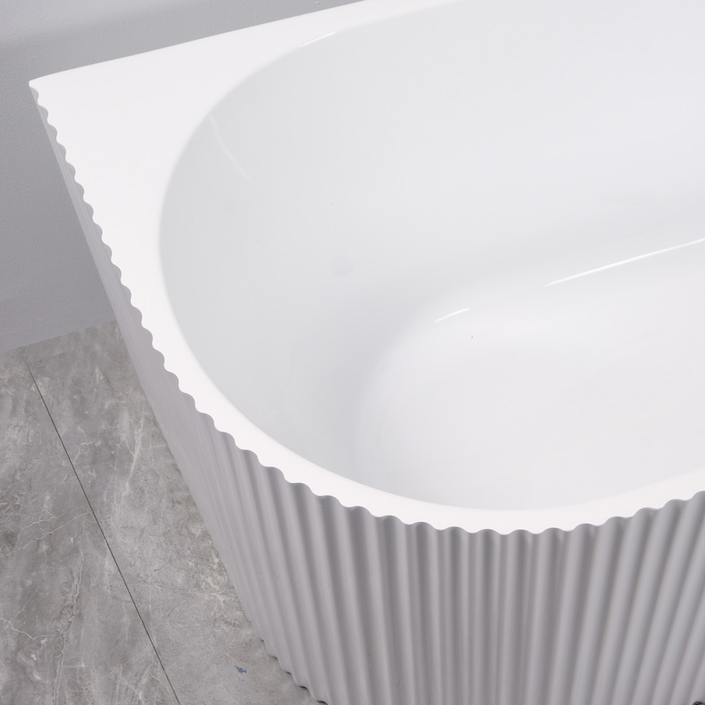 Cada freestanding premium cu riflaj, Linea Shell 160×75 cm, realizata dintr-o singura bucata. Aceasta cada, nu contine plastic ABS, ceea ce ii confera o durabilitate mult mai mare in timp si o pastrare impecabila a culorii. Pretabila pentru montare la perete, datorita spatelui drept. Include sifon flexibil, ventil click clack si cadru metalic cu picioare reglabile.
