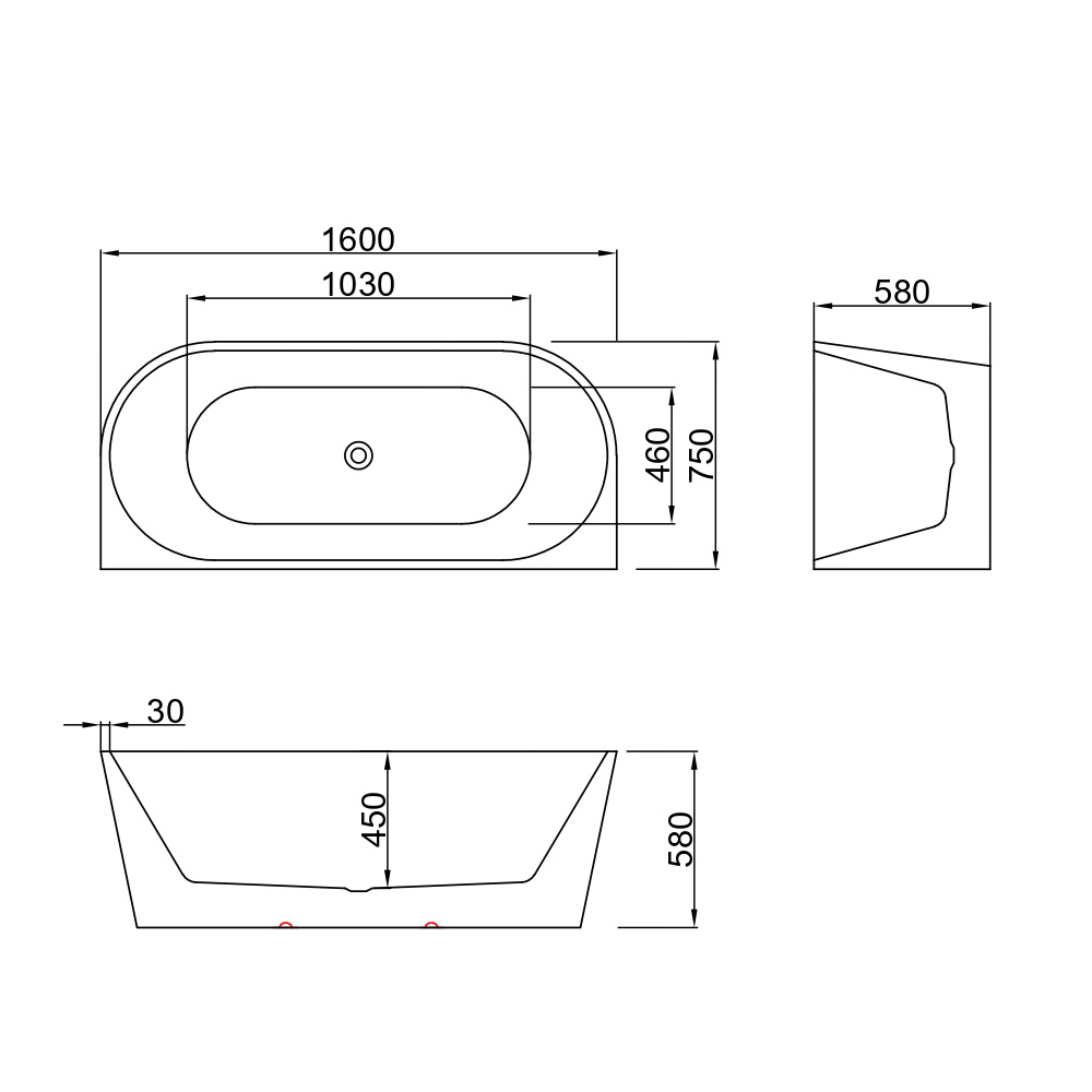 Cada freestanding la prete Linea Shell negru 160x75x58
