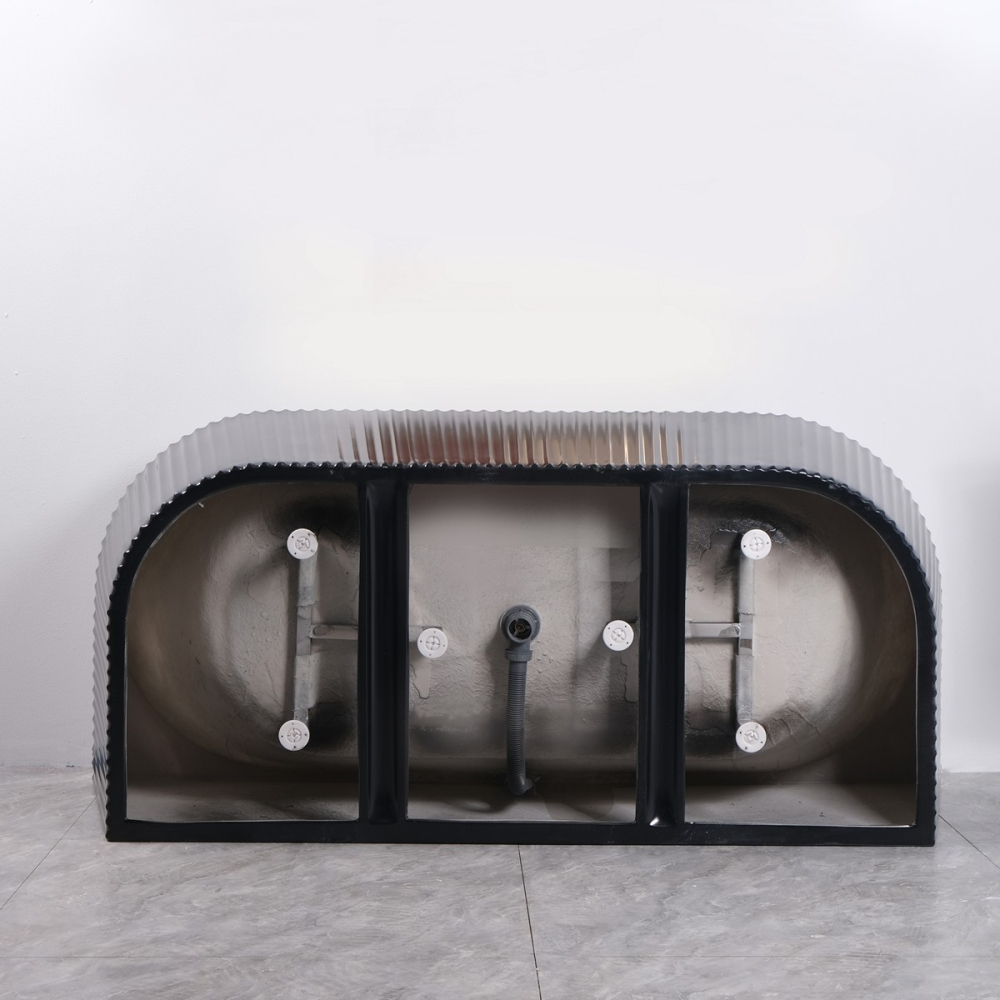 Cada freestanding premium cu riflaj negru, Linea Shell 170x75x58 cm, realizata dintr-o singura bucata. Aceasta cada, nu contine plastic ABS, ceea ce ii confera o durabilitate mult mai mare in timp si o pastrare impecabila a culorii. Pretabila pentru montare la perete, datorita spatelui drept. Include sifon flexibil, ventil click clack si cadru metalic cu picioare reglabile.