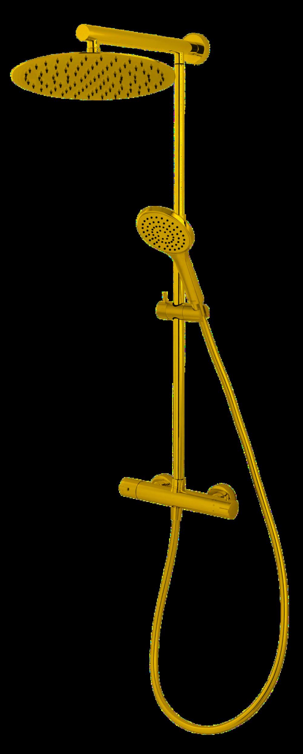 COLOANA DUS ANIMA, CU BATERIE TERMOSTATATA, BARA DUS REGLABILA, CAP DE DUS FIX ROTUND, PARA SI FURTUN DE DUS, AURIU LUCIOS