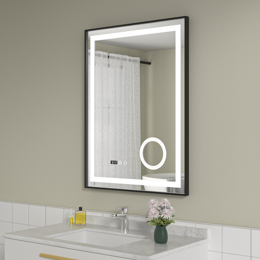 Oglinda baie 60×80 cu lupa. Rama neagra. Functie dezaburire