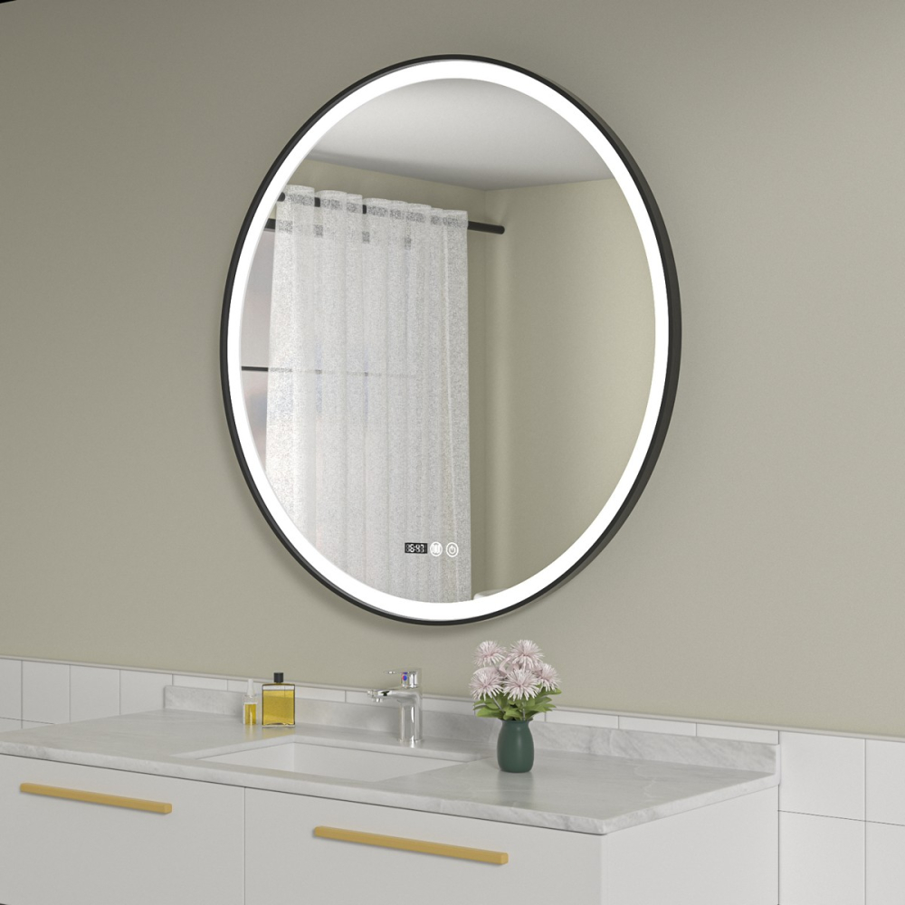 Oglinda baie 90×90 rotunda cu dezaburire. Rama neagra
