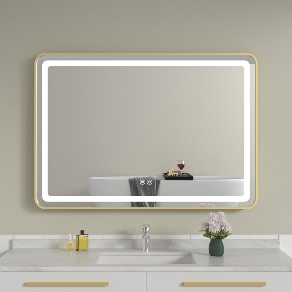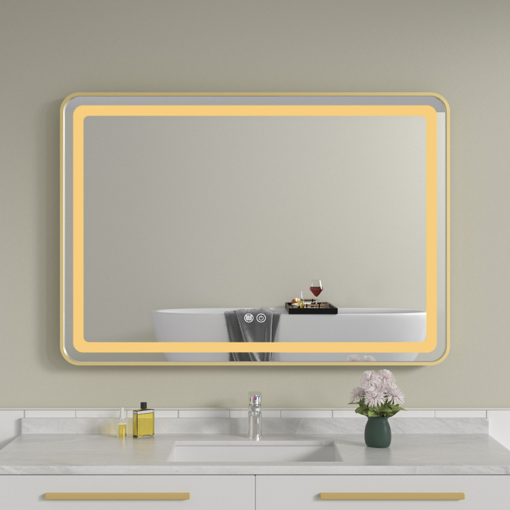 Oglinda baie cu led 60×80, rama aurie, trei tipuri de culoare