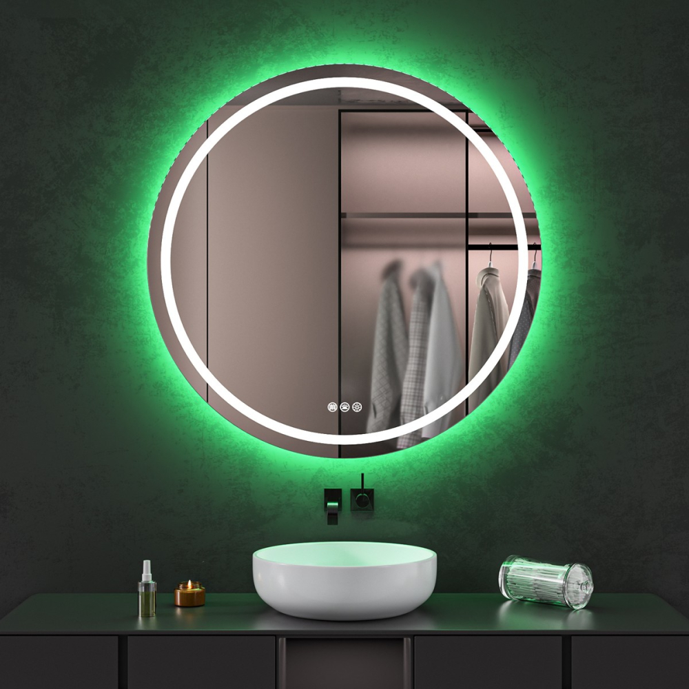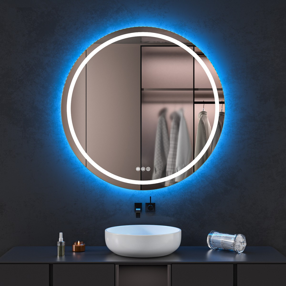 Oglinda baie cu led RGB 90×90 rotunda cu dezaburire