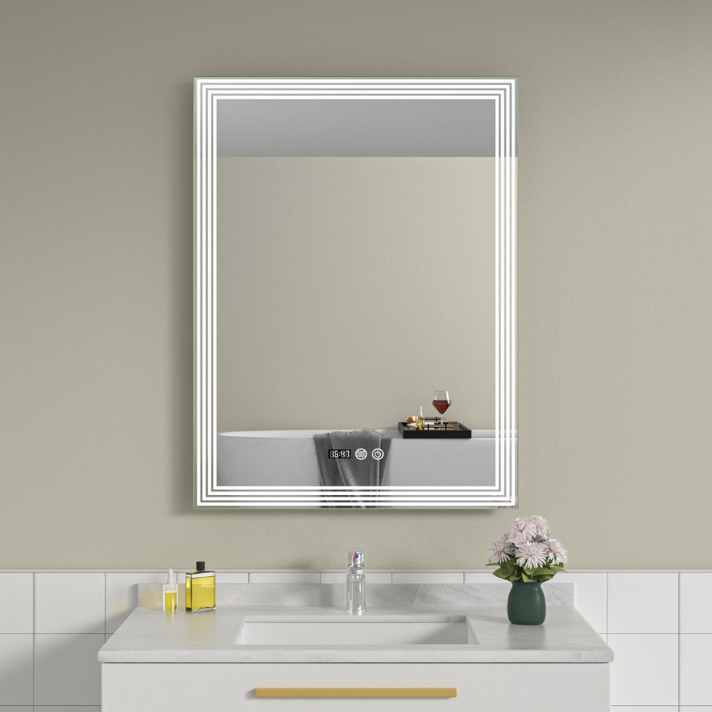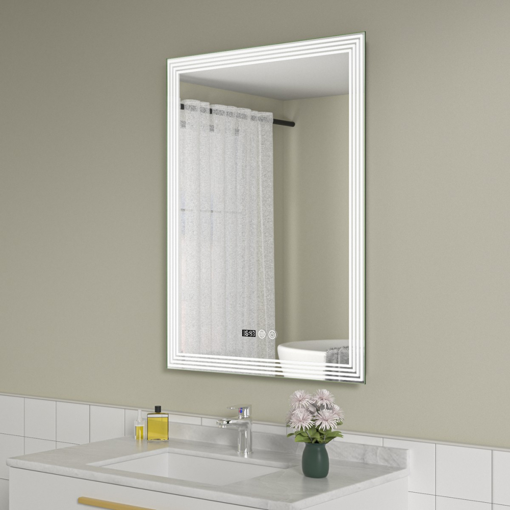 Oglinda baie led 60×80 cu dezaburire. Ceas digital